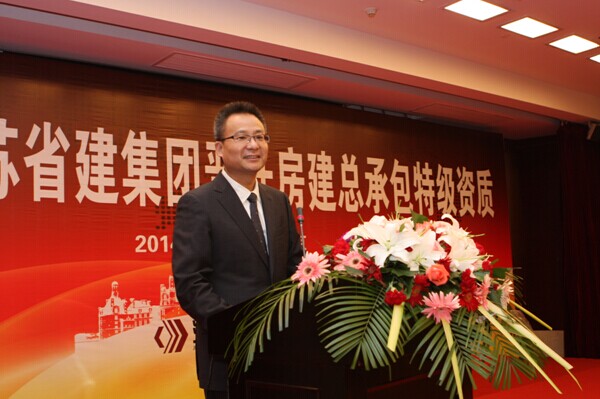 省住建廳副廳長徐學軍祝賀江蘇省建申特夢想成為現實。他說,省建申特一舉成功,在全省率先取得新一輪特級資質,值得全省建筑業慶賀,而省建的歷史將翻開新的一頁。他希望江蘇省建集團吃透中央城鎮化會議精神,抓住這難得的發展機遇,繼續堅持人才戰略、管理現代化戰略、質量興業戰略和品牌戰略,積極提升企業的市場占有率、核心競爭力、產值利潤率和品牌影響力,從而做大做強企業的綜合實力。他還將“新起點、新征程,共創明天新輝煌;抓機遇、迎挑戰,譜寫省建新華章”兩句話贈送給與會人員,勉勵全體省建人以特級資質為切入口,搶抓戰略機遇,為推動全省建筑業又好又快發展作出新貢獻。